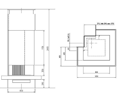 Цена указана за камин в стандартном исполнении (см. чертеж).