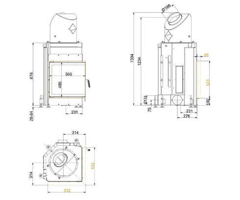 Топка Eck-K 51/52/52 без подъема, с одним стеклом
