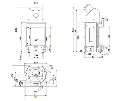 Топка КК 51/55 без подъема с одним полукруглым стеклом
