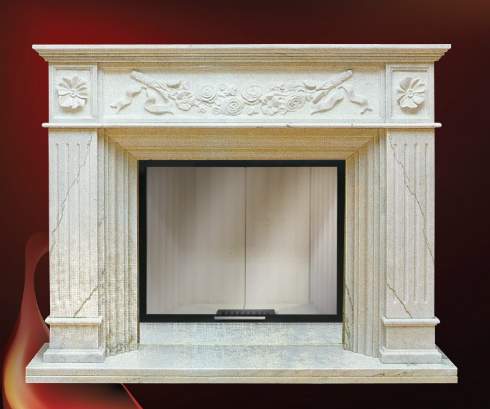 Декоративный камин из мрамора создаст особую теплую атмосферу в доме. Боковые стороны декорированы резными колоннами, верх - цветочными элементами ручной работы.