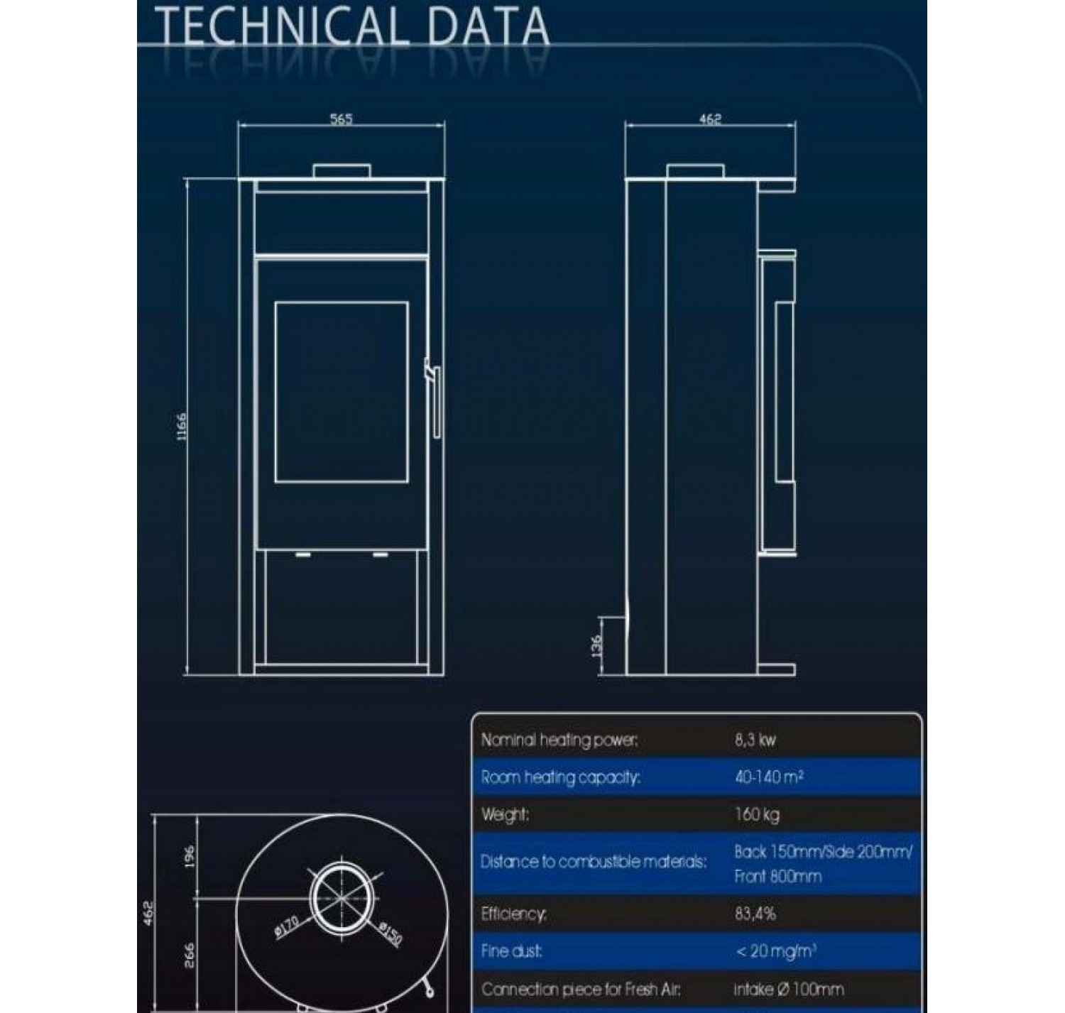 • Диаметр дымохода, (мм)