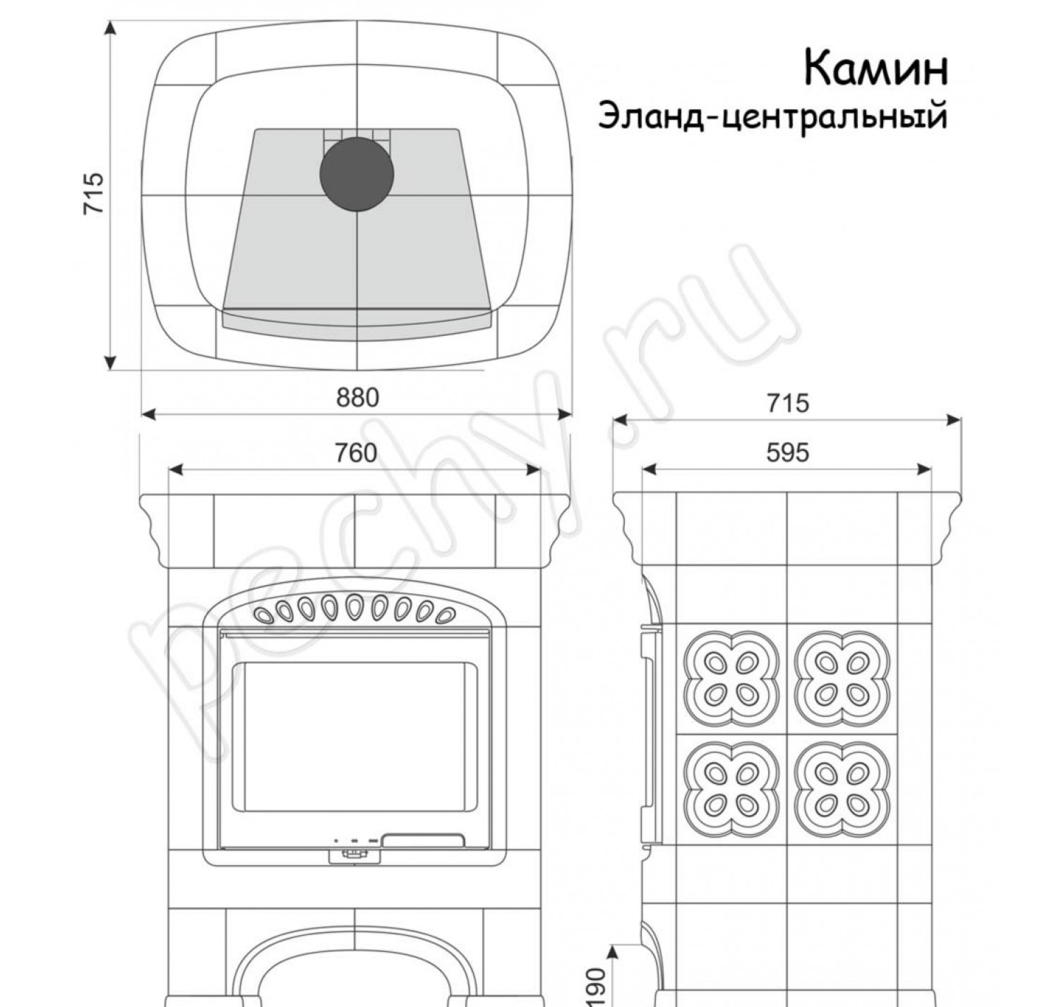 Варианты установки: пристенный (задняя стенка не облицована кафелем) и центральный (кафель по все окружности печи). Для подключения к дымоходам также дополнительно можно приобрести керамические трубы, которые изготовлены в едином решении с камином.