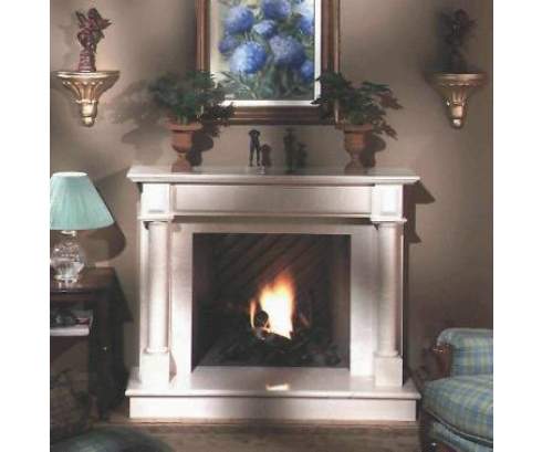 Этот классический камин выглядит просто великолепно. Он изготовлен из высококачественного мрамора светлого оттенка и украшен строгими колоннами.