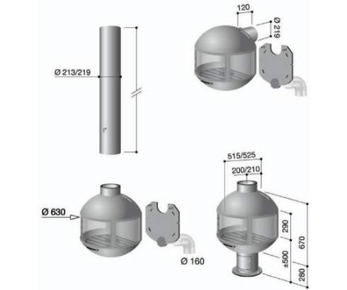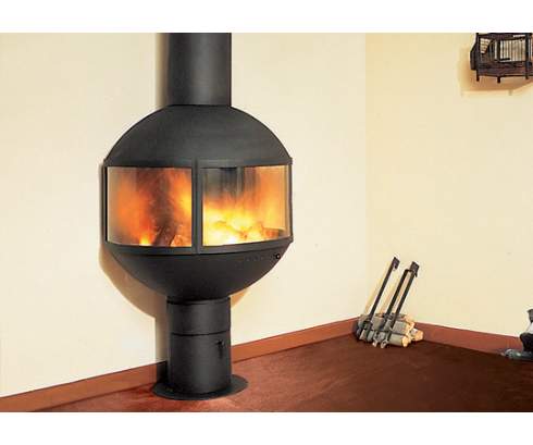 Существует две версии: пристенная или с основанием. Дверцы из пирокерамического стекла позволяют видеть огонь на 180 градусов. Топки оснащены теплообменником с двойными стенками, через который проходит свежий или окружающий воздух. В версии с основанием имеется отверстие для удаления золы.