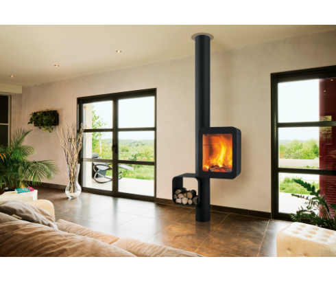 Экстравагантный камин, подчеркивающий красоту огня в дорогой оправе из стали и стекла. Необыкновенное решение- полка для дров и печь располагаются отдельно, будто лестница, позволяя наслаждаться огнём, чтобы ничто не мешало. Высота очага, которую уравновешивает боковая полка для дров, делает печь удобной в использовании.