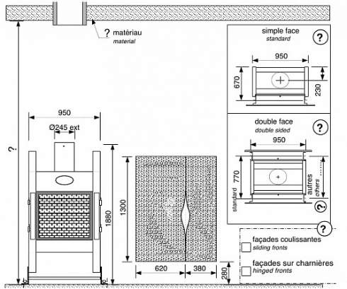 Фасады Métafocus также существуют со встроенной поддерживающей рамой и могут быть установлены с топками других производителей.