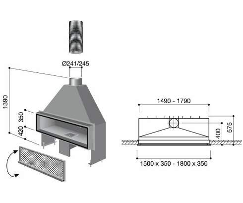 Встроенные регуляторы тяги и притока свежего воздуха. Съемный зольник для дровяной версии. Для газовой версии автоматическое управление и возможность выбора между гравием, галькой и керамическими поленьями. Верхние и нижние вентиляторы обязательны.