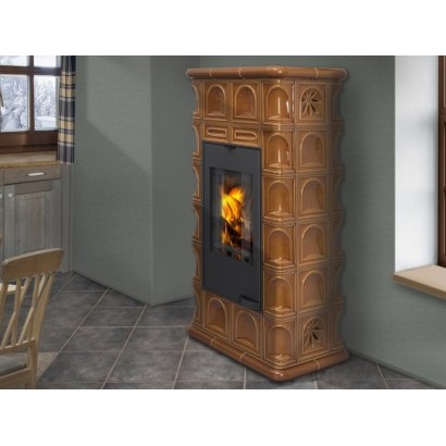 С помощью изразцового декора Ваш дом преобразится до неузнаваемости и станет настоящим произведением искусства. Большие керамические блоки, которые используются в облицовке данной модели также несут функцию теплонакопительных модулей (аккумуляция), которые позволяют излучать тепло в течении нескольких часов после того как огонь погаснет. Данная модель отлично подходит для отопления любого помещения, объем которого не превышает 220 м3. Застеклённая дверца повышает визуальный контакт с пылающим огнем. Керамическая облицовка оригинальна, но вместе с тем, сдержанно элегантна. Аккуратно сделаны и обработаны мельчайшие элементы, углы, плавные линии.
