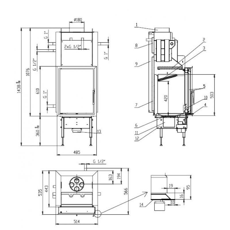 - Каминная топка содержит охлаждающую систему, системой подачи воздуха с улицы, системой очистки стекла, изолированный теплообменник, выбор подставных ножек.