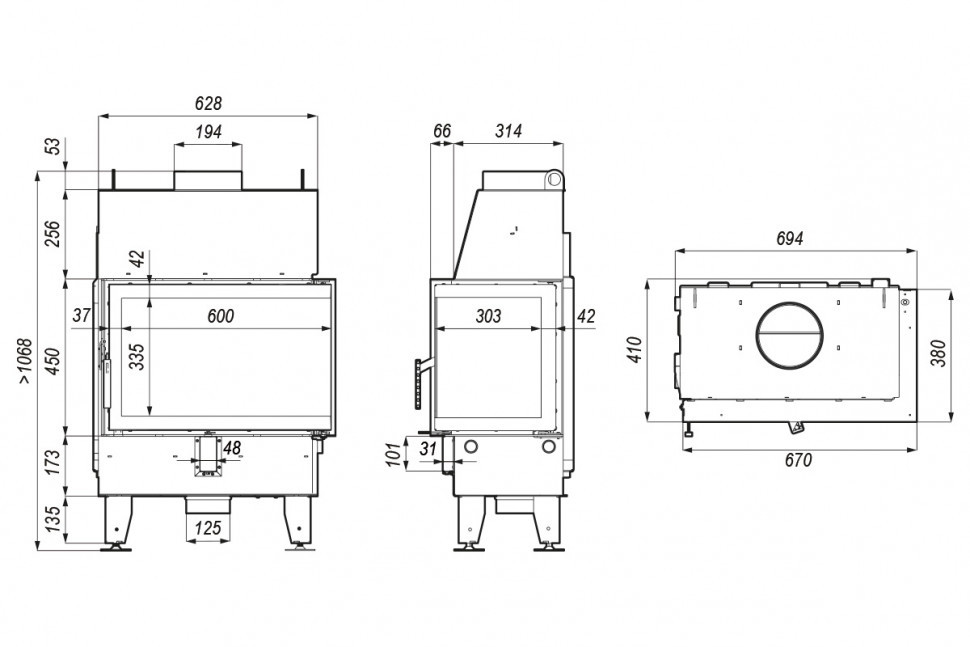 Топка отвечает самым высоким требованиям по защите окружающей среды. Изделие, в соответствии с требованиями стандартов BImSchV2 и Ekoprojekt, минимизирует выбросы пыли и оксида углерода. Топка оборудована закаленным стеклом, стойким к высоким температурам (до 800 °С). Вставка изготовлена из высококачественной стали, имеет энергоэффективность ― класс A и отапливает помещения площадью 35-115 м². Модель дополняется стальной декоративной рамкой, которая приобретается отдельно.