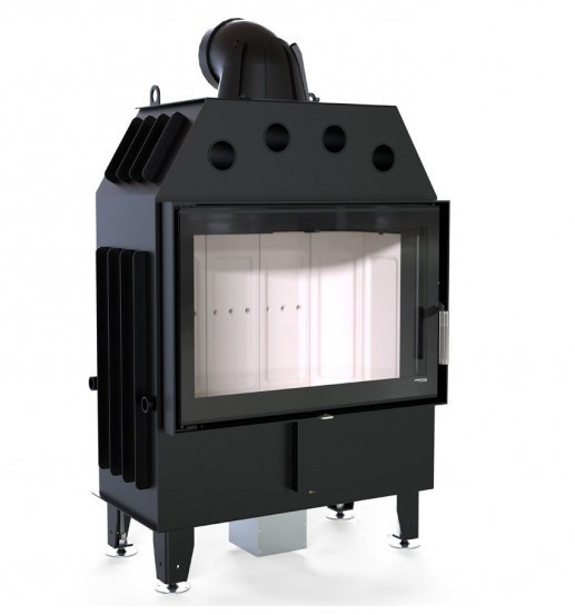 Изготовлена из стали с порошковым покрытием и имеет эффективность нагрева 80 %. Устройство с центральной подачей воздуха снаружи и возможностью ее регулировки. Специальная конструкция на трубе для подачи воздуха в топку, дает возможность изменить направление подачи воздуха на боковое. Плотно размещенные радиаторы способствуют передачи больше тепла окружающей среде, а воздуховоды повышают эффективность камина. Модель оборудована жаростойким стеклом, что выдерживает температуру до 800 °С.