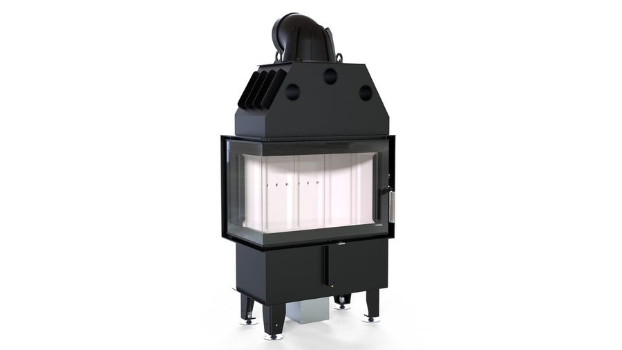 Модель изготовлена из стали с порошковым покрытием. Устройство с центральной подачей воздуха снаружи и возможностью ее регулировки. Специальная конструкция на трубе для подачи воздуха в топку, дает возможность изменить направление подачи воздуха на боковое. Плотно размещенные радиаторы способствуют передачи больше тепла окружающей среде, а воздуховоды повышают эффективность камина.