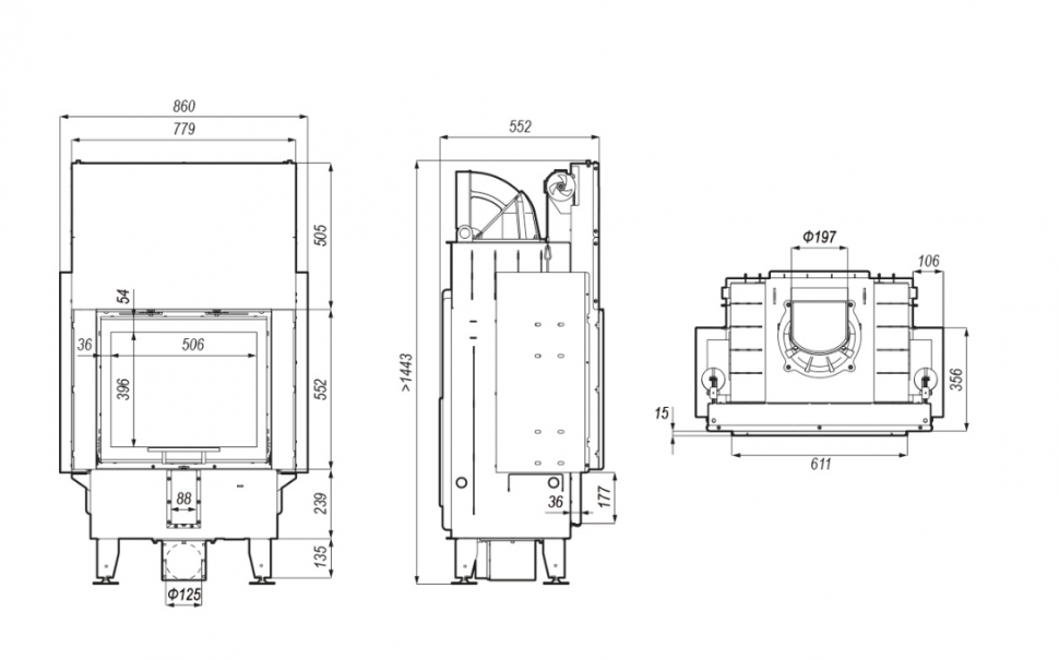 - Габаритные размеры ШxГxВ, (мм): 860x552x1443