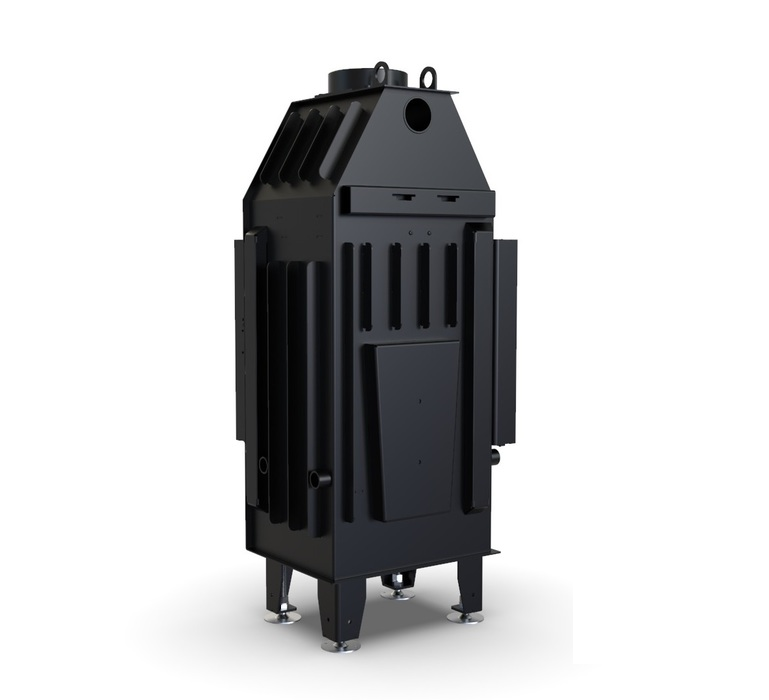 Стальной корпус покрыт качественным лакокрасочным покрытием, даже при первой растопке, пользователь не ощутит неприятного запаха. Внутри топка защищена белыми панелями Keramiton, специального керамического сплава. Г-образная дверца имеет боковое открытие, оснащена составным стеклом с трафаретной печатью и ручкой с перфорированной структурой для естественного охлаждения.