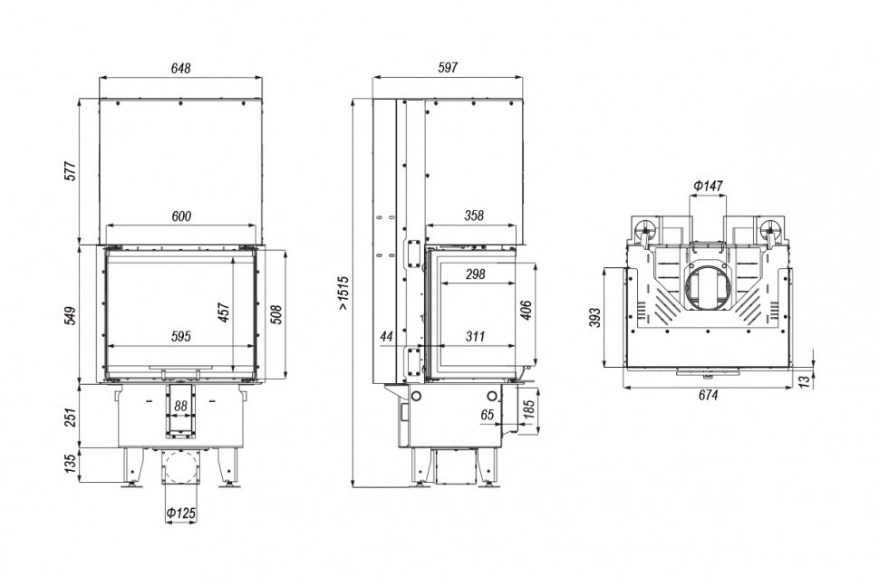 - Габаритные размеры ШxГxВ, (мм): 674x597x1515