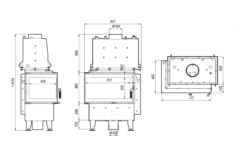 Топка дополняется стальной декоративной рамкой, которая приобретается отдельно. Дополнительная опция: черная ручка для дверей.
