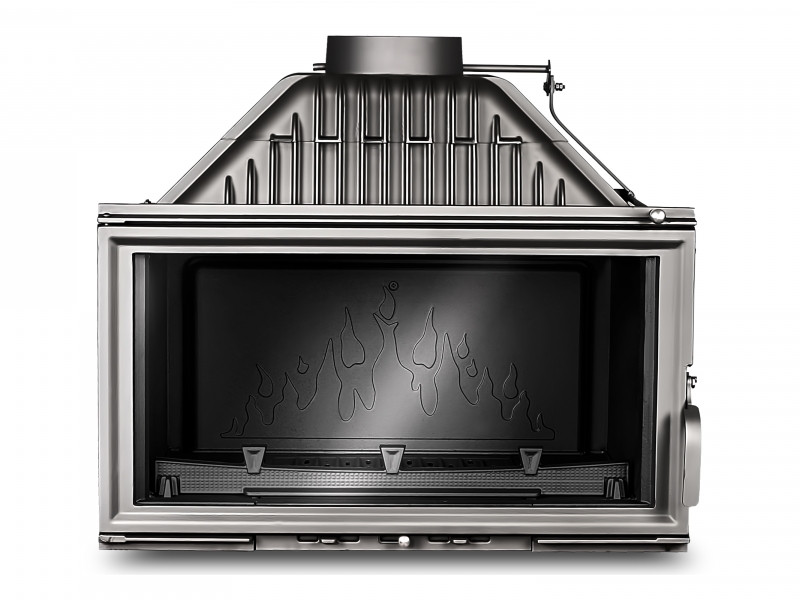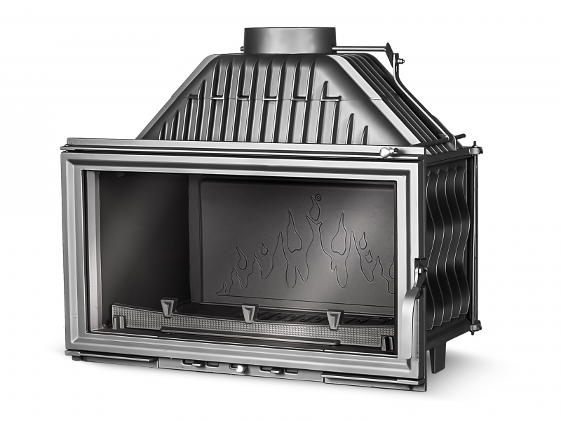 Каминная топка W15-18 кВт является классической топкой производимой заводом KAWMET по современным технологиям, топка выполнена из толстого чугуна класса EN-GJL- 200 и оборудована подводом наружного воздуха в камеру сгорания, встроенным шибером для регулировки процесса горения и дымоотведения, и более точной регулировкой подачи воздуха через нижнюю часть дверцы под колосниковую решетку, открыв ее на максимум, вы подаете к дровам оптимальное количество воздуха для быстрого розжига.
