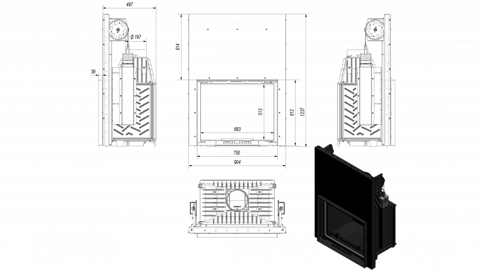 - Декоративная стеклянная панель типа glass, которая выдерживает температуру до 660 °C и предоставляет камину современного и элегантного вида, оптически увеличивает переднюю часть топки.