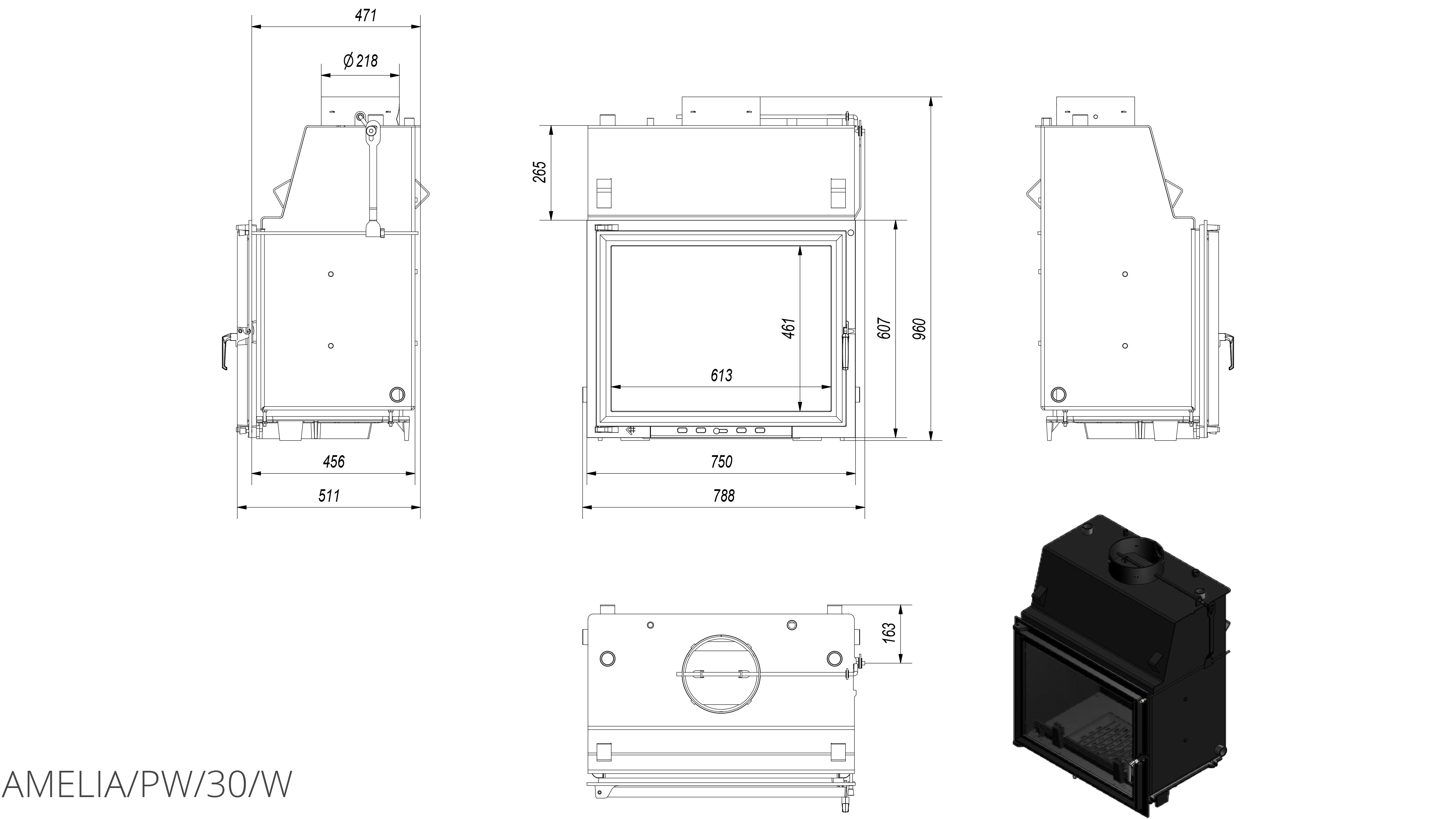 Каминная топка с водяным контуром Kratki Amelia/PW/30/W приспособлена для интенсивного сгорания, где применены технологии и материалы создают удобную, экономичную и экологическую топку с высокой эффективностю.