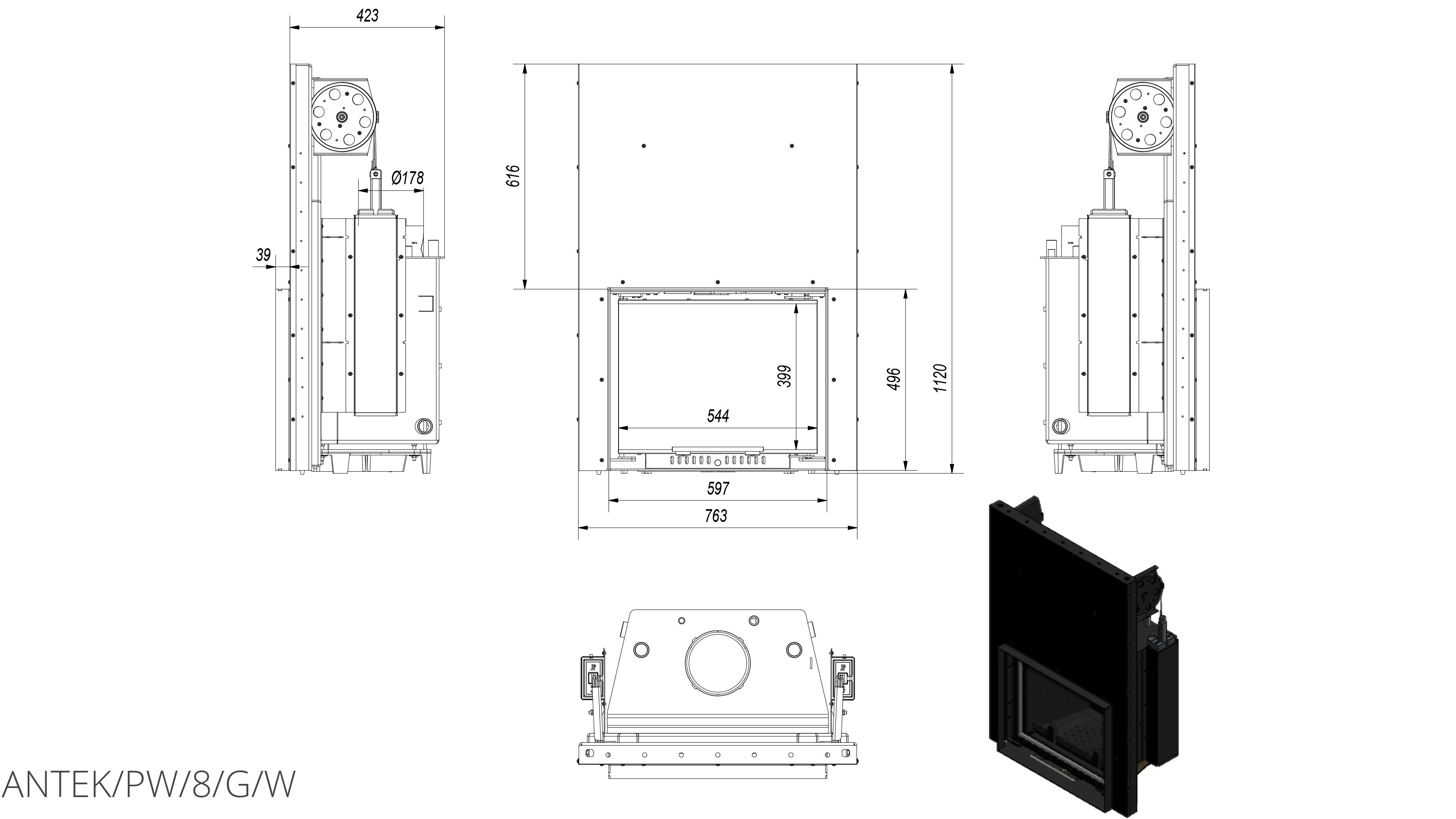 Небольшая каминная топка Kratki Antek/PW/8/G/W (гильотина) может служить не только украшением интерьера, но и полноценным отопительным прибором, который не только отдает тепло в помещение, но и выполняет функции отопительного котла – нагревает воду для системы отопления. Дверца топки имеет тросовый механизм подъема – вертикальное открытие дверцы.