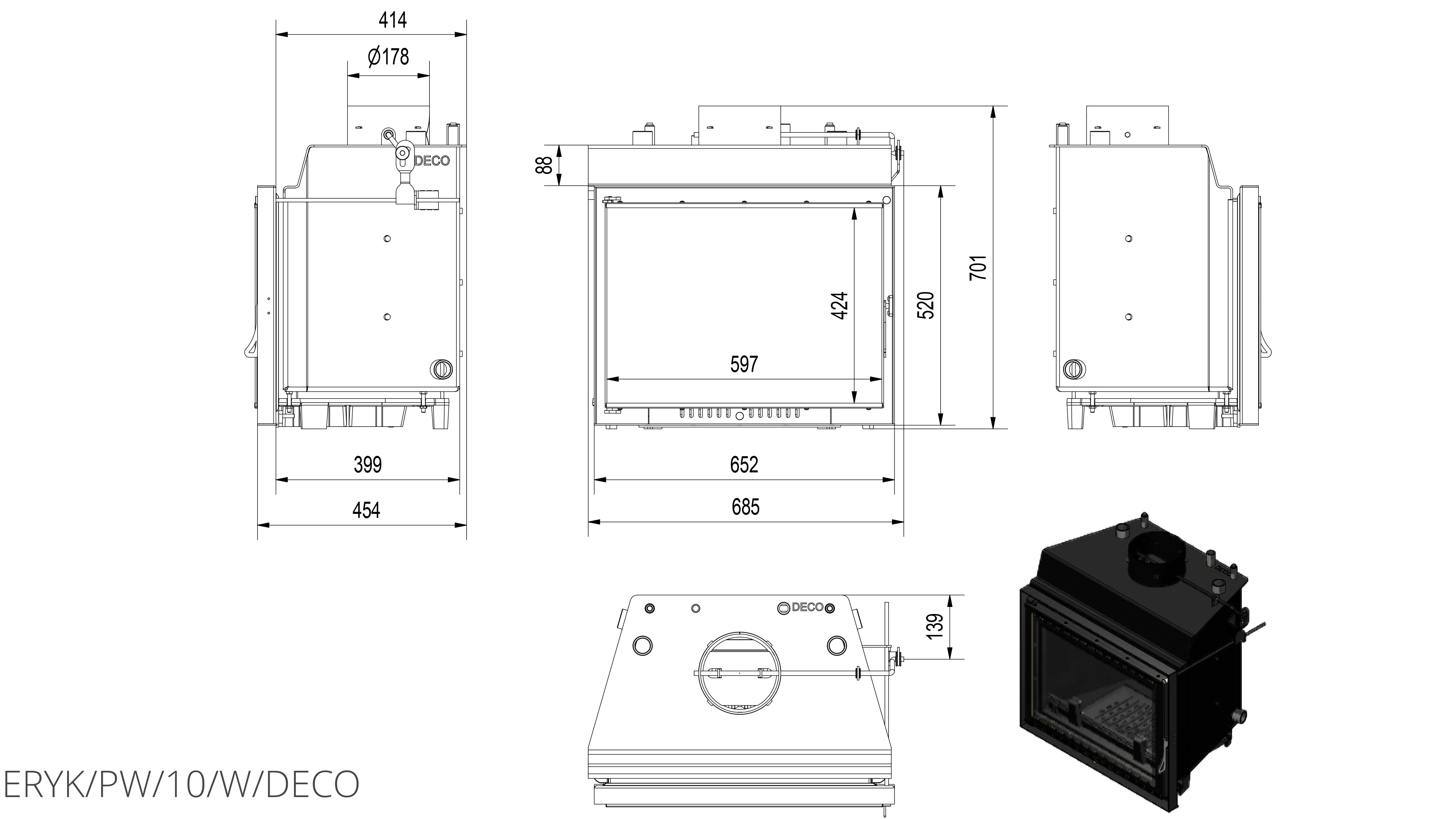 Каминная топка Kratki Eryk/PW/10/W/Deco