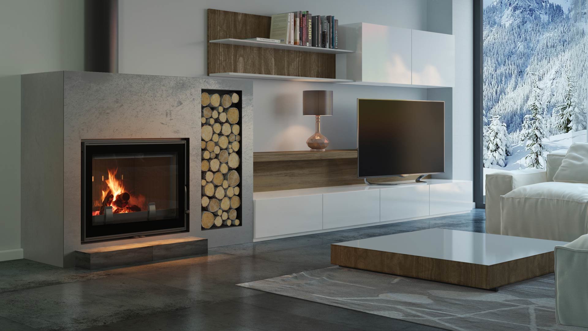 - установка дровяного камина довольно сложна и занимает много времени сама по себе, не говоря уже о попытке вписать такой камин в готовый интерьер; - устройству дымохода следует уделить особое внимание, так как при ошибках в конструкции камин может начать дымить внутрь помещения; - необходимость установки дымохода сильно усложняет процесс размещения камина в городской квартире, особенно, если квартира располагается не на последнем этаже; - необходимо заранее продумать, где будут храниться дрова; - нужно помнить, что при использовании для топки дров потребуется постоянная чистка дымохода от золы;