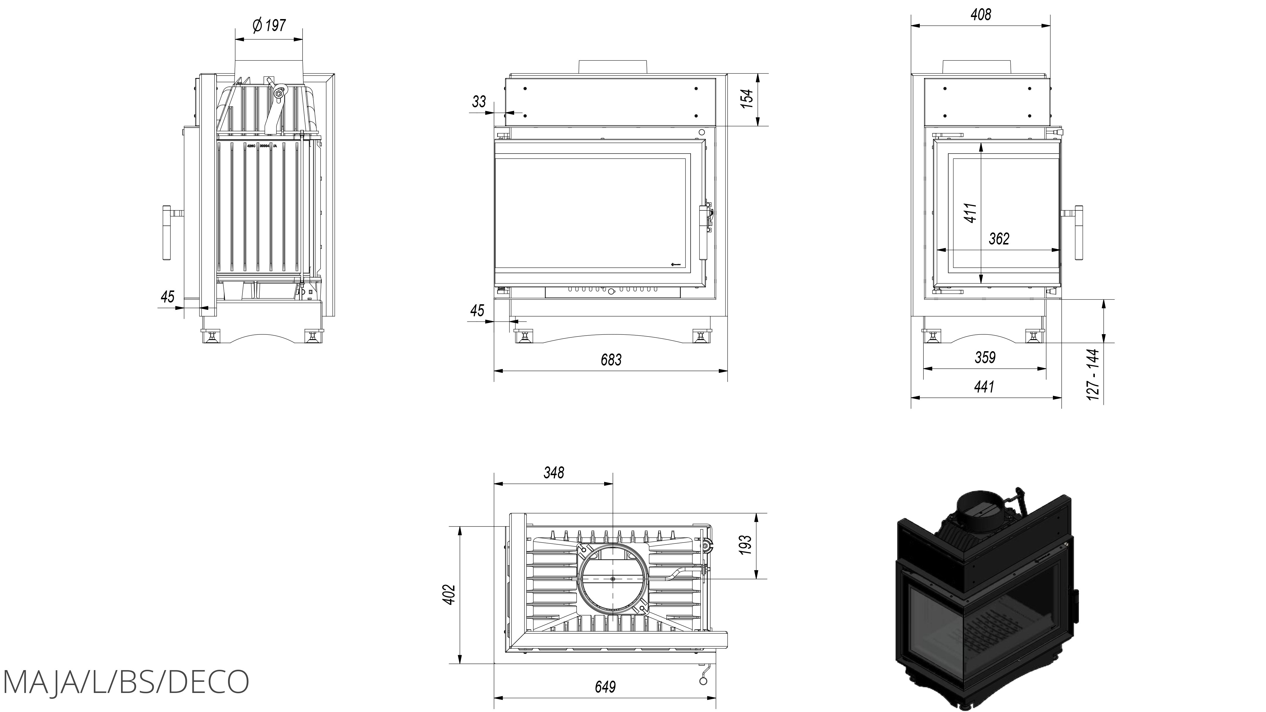 Каминная топка Kratki Maja/L/BS/Deco