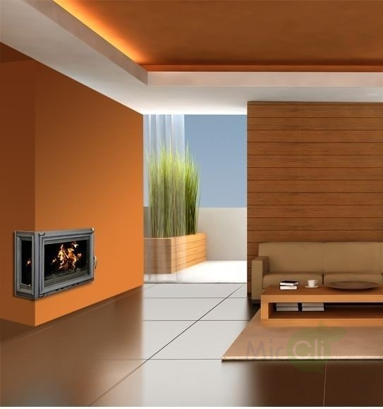 Рассматриваемую модель можно устанавливать в камины островного типа – данная топка имеет трехстороннее остекление, которое выполнено из термостойкого стекла. У данной модели открывается только фронтальная дверца. Подойдет для отопления помещения площадью до 160 кв. метров.
