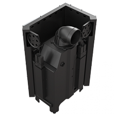 - Высокий переход из камина в дымоход и размещены поперек водяные дефлекторы увеличивают поверхность теплообмена между топкой и окружающей средой. Понижение температуры дымовых газов приводит к увеличению мощности устройства.