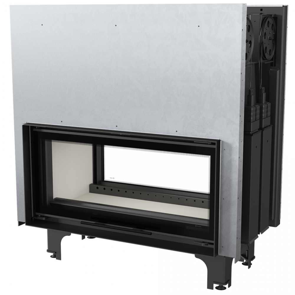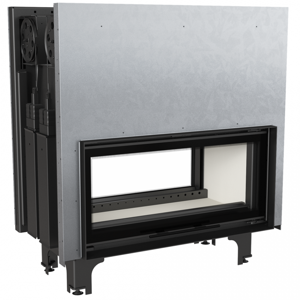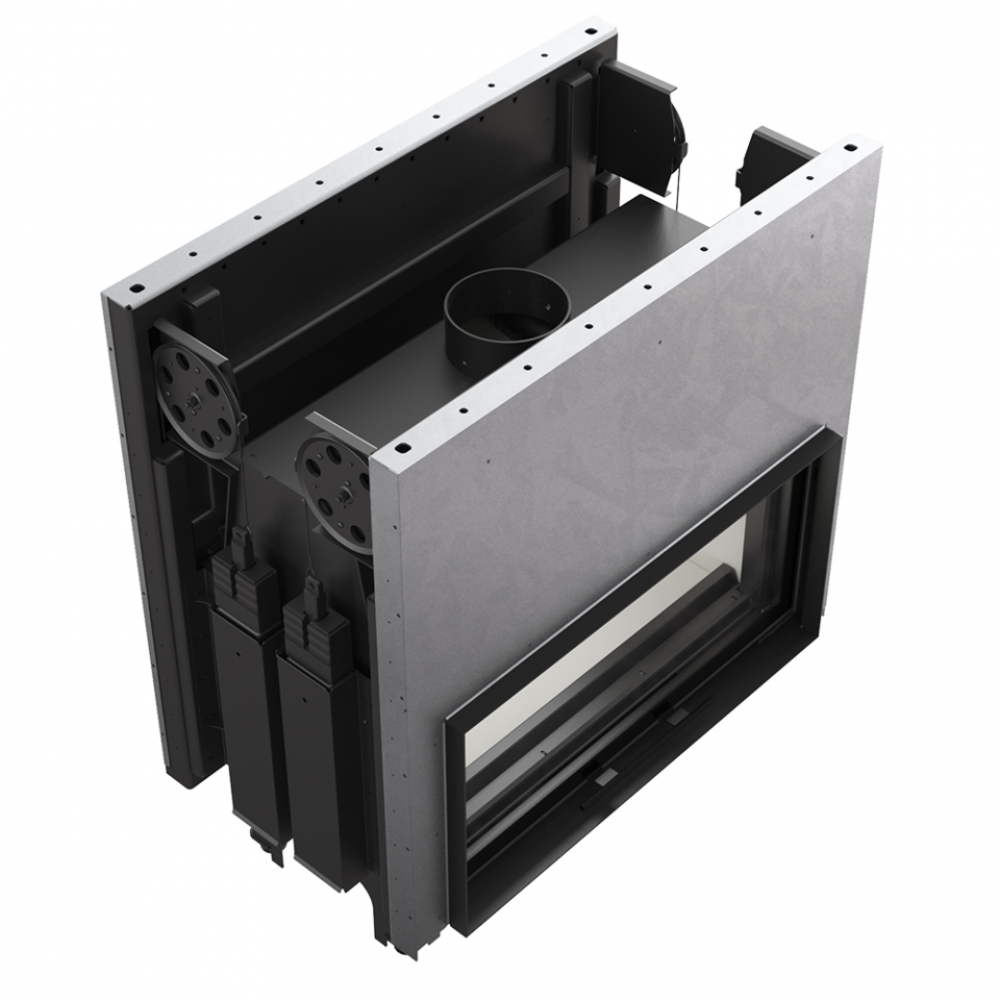 Каминная топка Kratki Mila/T/G (туннельная, 2-х сторонняя гильотина) с современной панорамной передней стороной и большим созерцанием огня. Встраиваемая топочная камера, выполненная из котельной стали. Данная модель топки относится к топкам туннельного типа, когда оба фасада имеют дверцы (со стеклами).