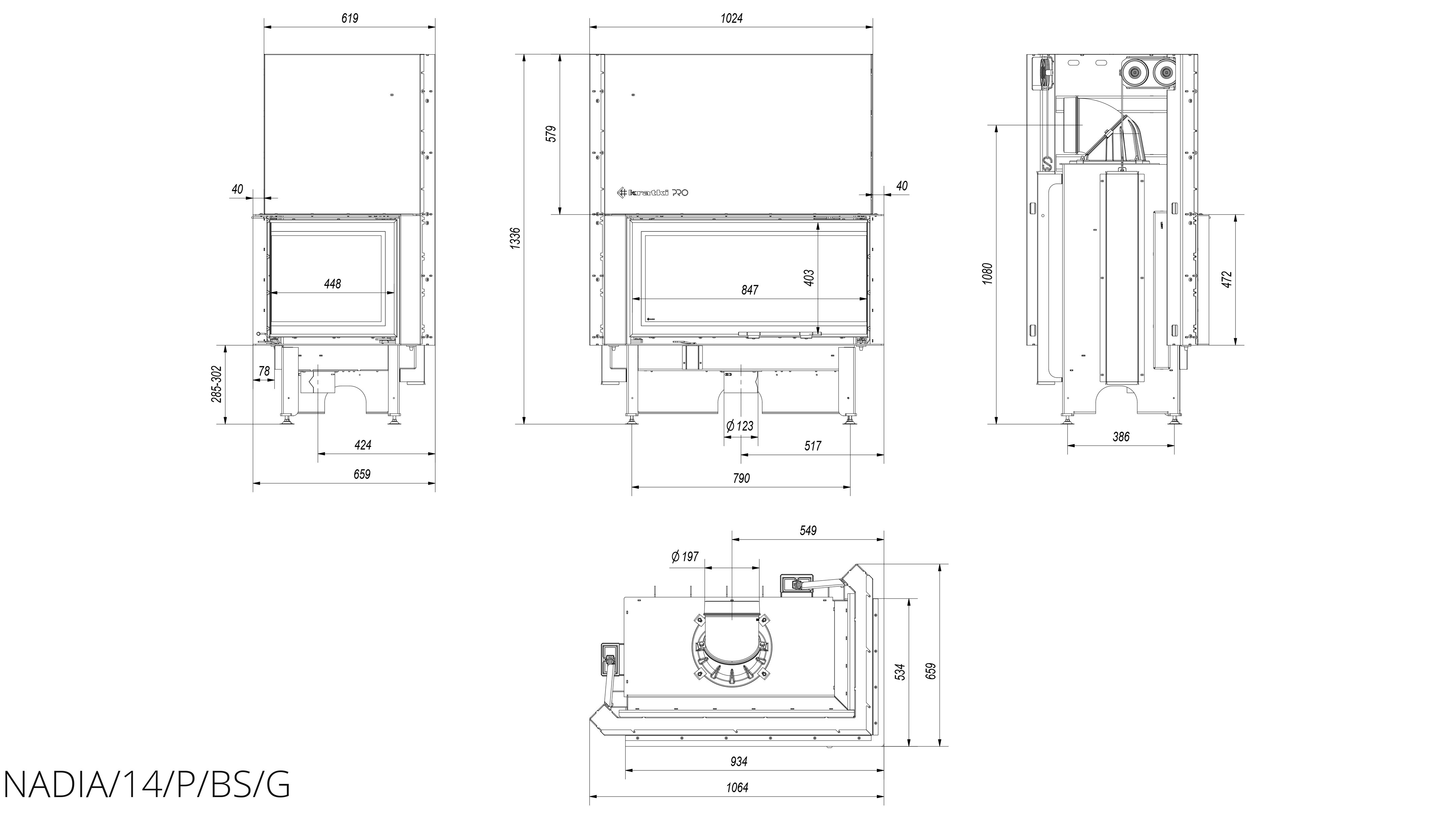 Каминная топка Kratki Nadia/14/P/BS/G (Г-образное стекло справа, гильотина) - современное решение для всех, кто хочет легко пользоваться камином. Шестиугольная камера и отличные параметры горения являются важнейшими преимуществами этой модели.