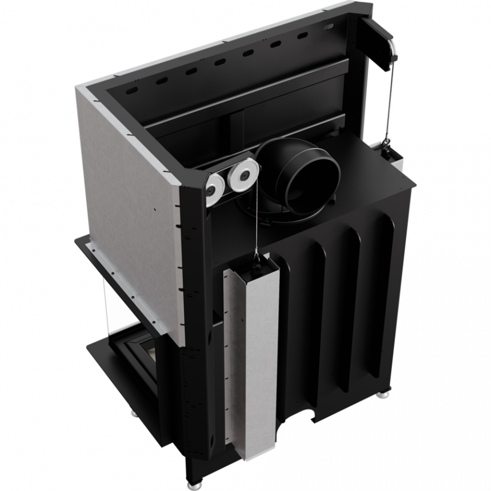 Предназначается для установки в угол помещения, для этого она оснащена большим Г-образным окном из жаропрочной стеклокерамики. Особенность данной модели является вертикальный подъем дверцы для закладки дров, что соответствует современным тенденциям в мире каминостроения.
