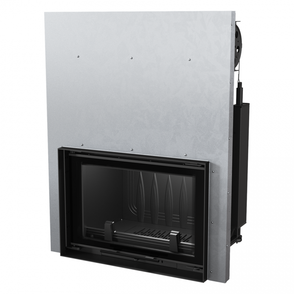 - Дверцы топки работают в системе lift up - стеклянная панель поднимается вверх. Эта система была построена, опираясь в противовес - два блока (по обоим сторонам двери) со стальной рейкой работают в направляющих на двух несущих роликах, благодаря чему вес двери равномерно распределяется. Они движутся вдоль на огнеупорных роликах, установленных в дверной раме, что гарантирует их лёгкое, тихое и бесперебойное функционирование. Движение дверец происходит на расстоянии пару миллиметров от корпуса, что предотвращает повреждение герметизации. Дверцы, которые закрываются, с большой силой погружаются в дверную раму, благодаря чему камера сгорания есть полностью герметичной.