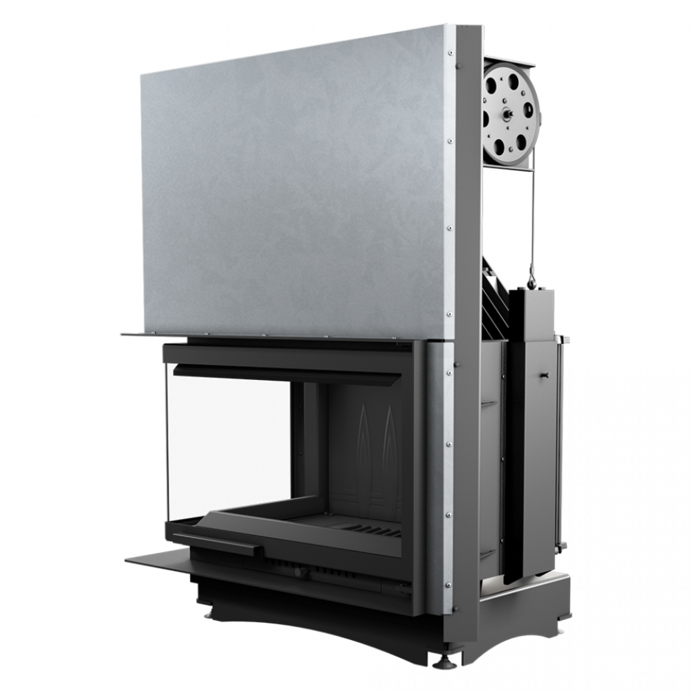 • Двойная система открывания дверец вверх (гильотина) и в сторону. Дверцы, что поднимаются и опускаются, облегчают наполнение древесиной, а механизм, который позволяет боковое открывание, позволяет очистить стекло более эффективно.