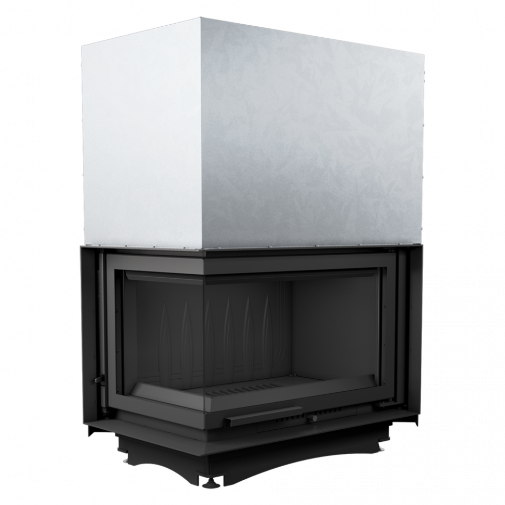 • Каминная топка с двумя стеклянными панелями, сопоставленными друг напротив друга под прямым углом (стеклянные панели соединены без рамы).