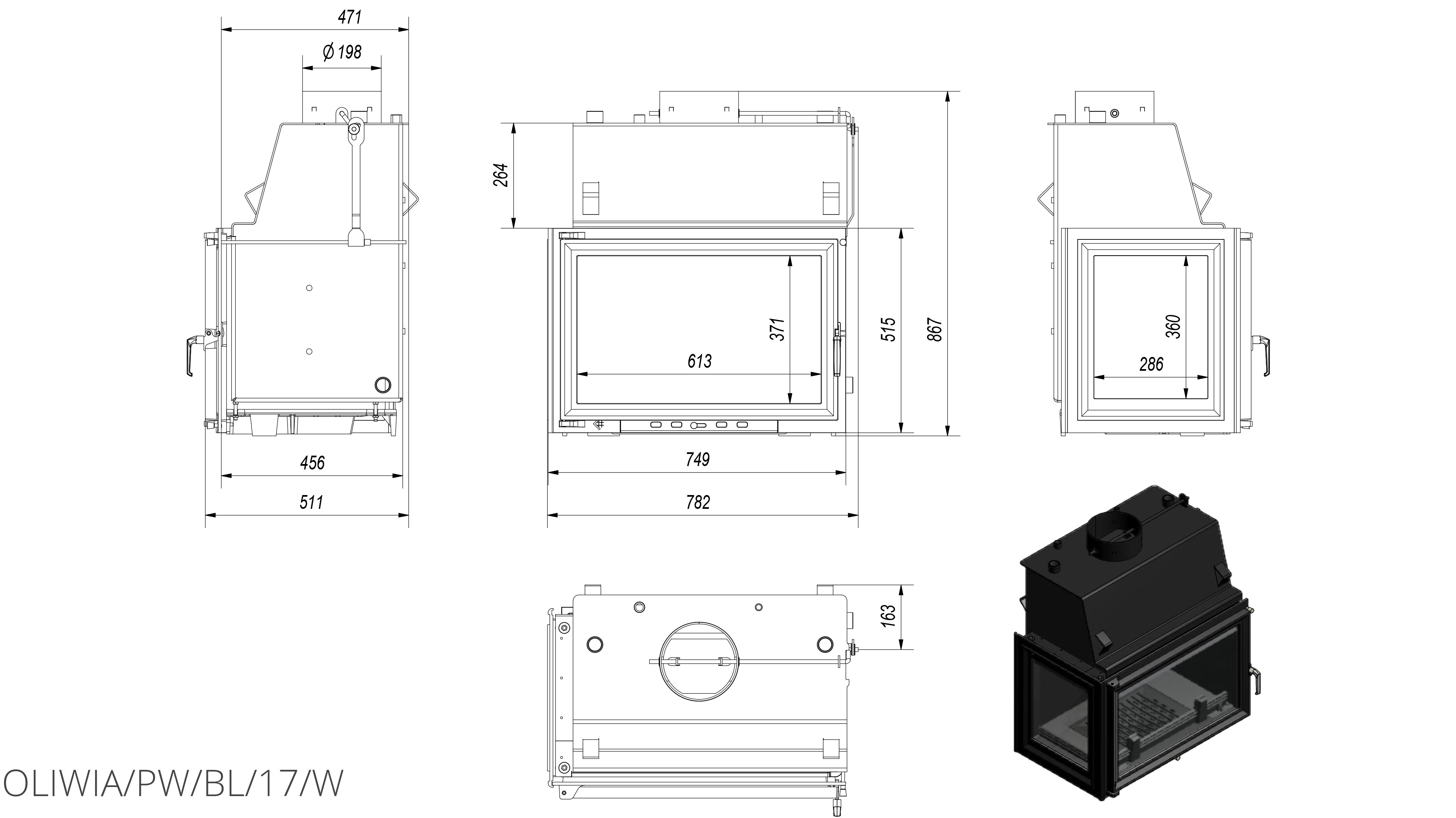 Каминная топка Kratki Oliwia/PW/BL/17/W
