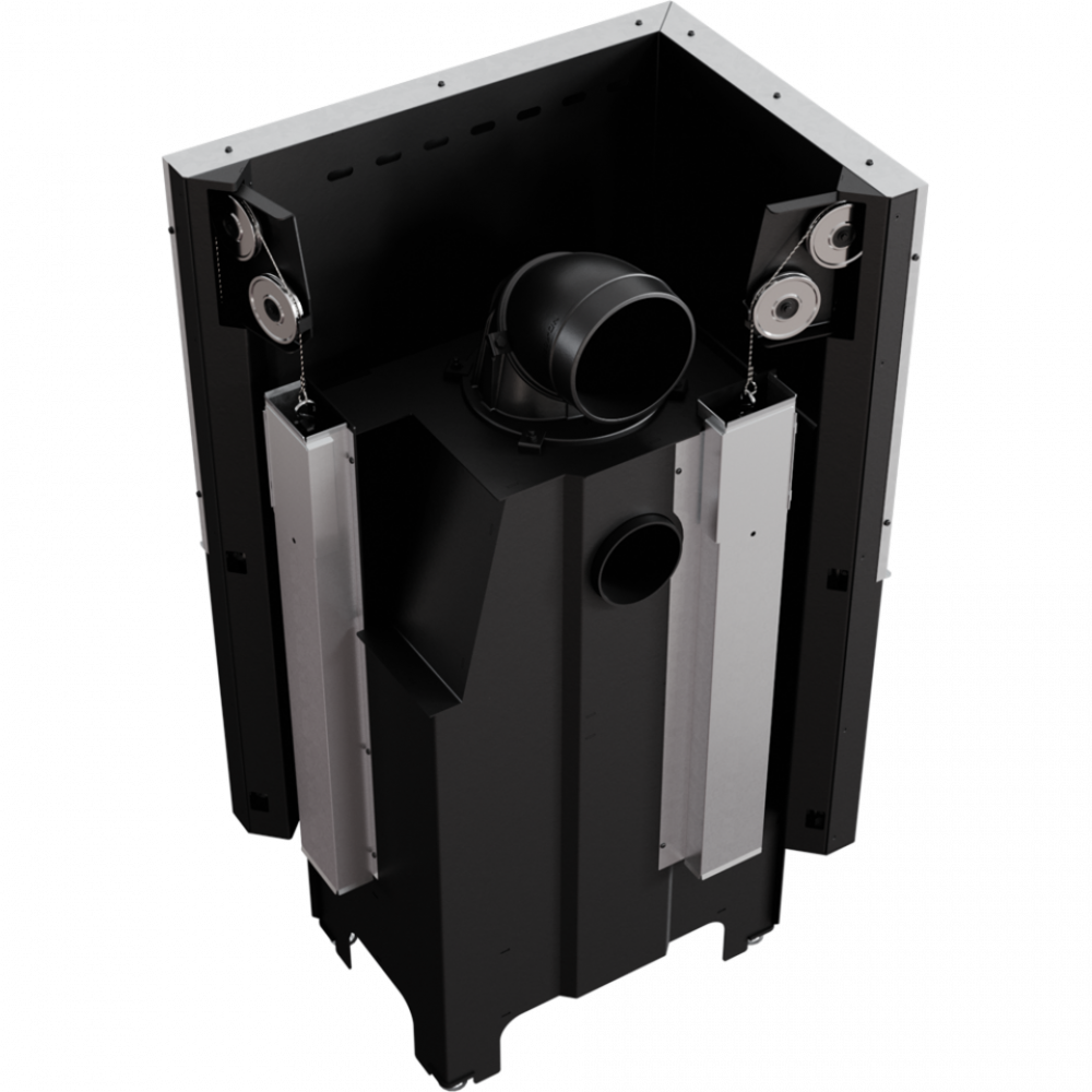 - Система внутреннего контроля дает возможность вести сервисные работы изнутри камеры сгорания без необходимости уничтожения застройки камина.