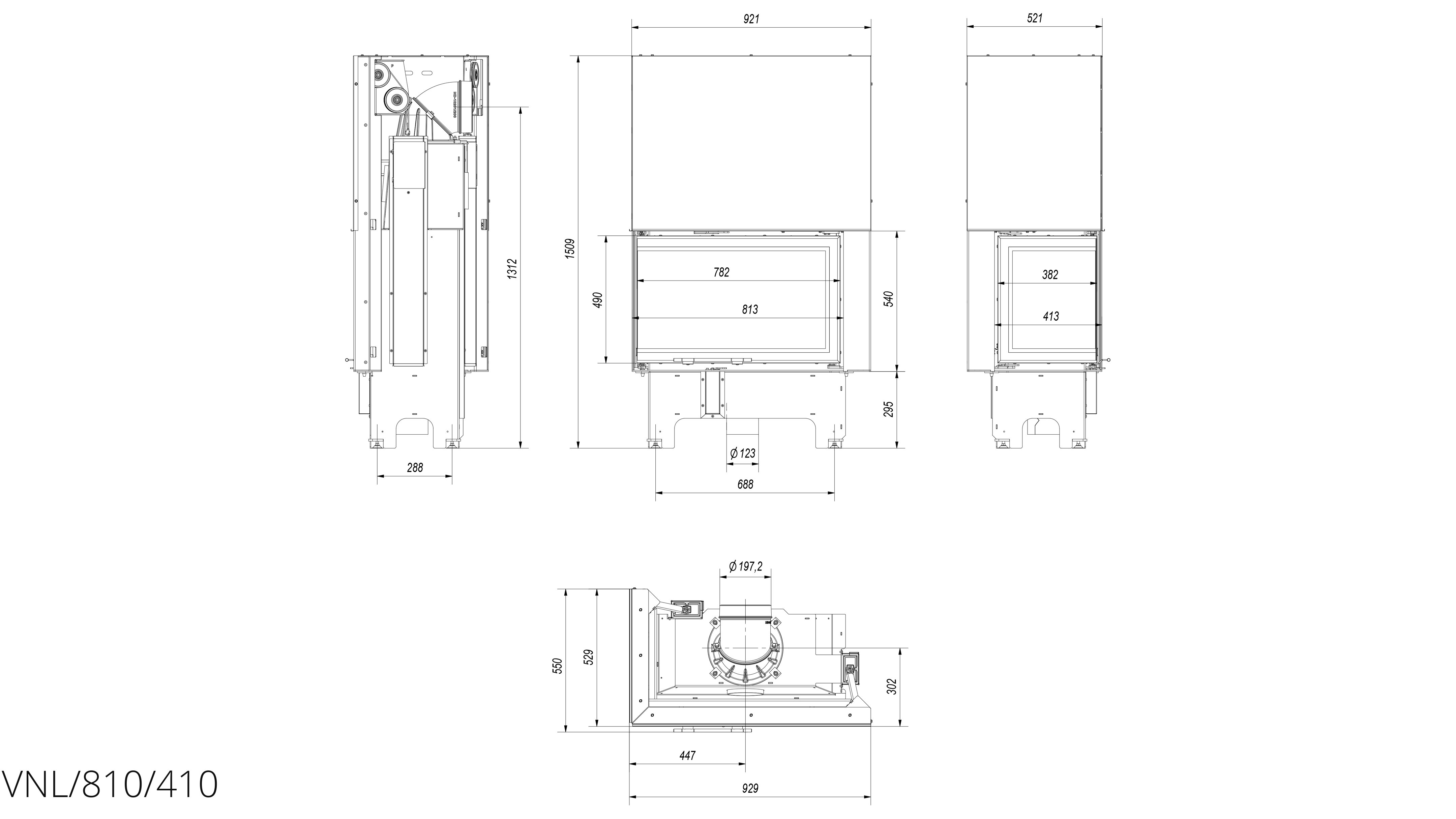 Современная каминная топка Kratki VNL/810/410 (Г-образное стекло слева, гильотина) в варианте с дверцами, что поднимаются вверх (гильотина - система подъема) с боковым стеклом без рамы сочетает уникальную эстетику и исключительные функциональные свойства. Вне визуальных качеств, устройство гарантирует исправное отопления помещений и экологическое сжигание древесины.