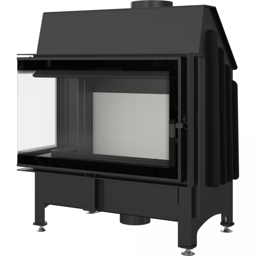 - Модель оснащена подвижным дымоходным отверстием, так что во время монтажа нет необходимости покупать дополнительные колена. Можно легко подобрать угол подключения топки к каминной инсталляции.