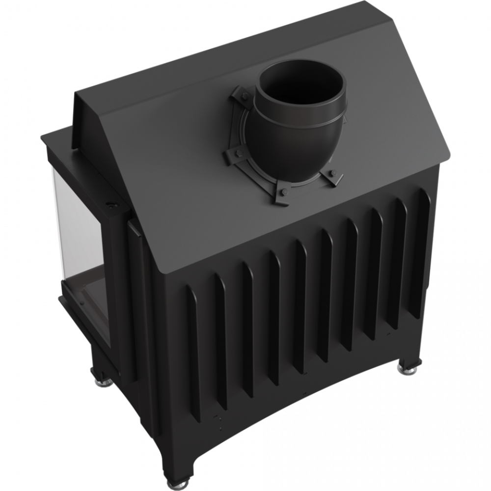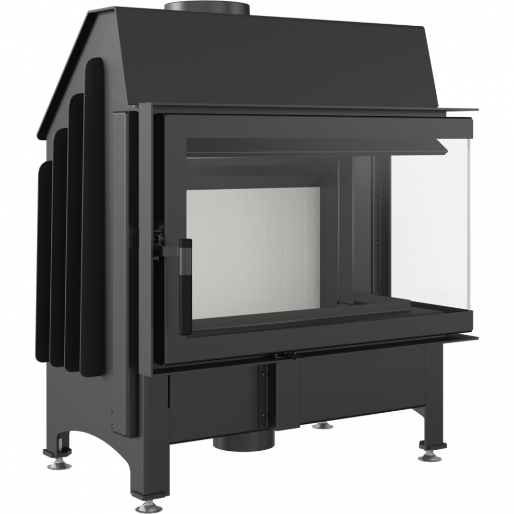 Стальная каминная топка Kratki Zibi/P/BS (Г-образное стекло справа) с современной панорамной передней стороной, что делает ее более широкой, чем есть на самом деле.