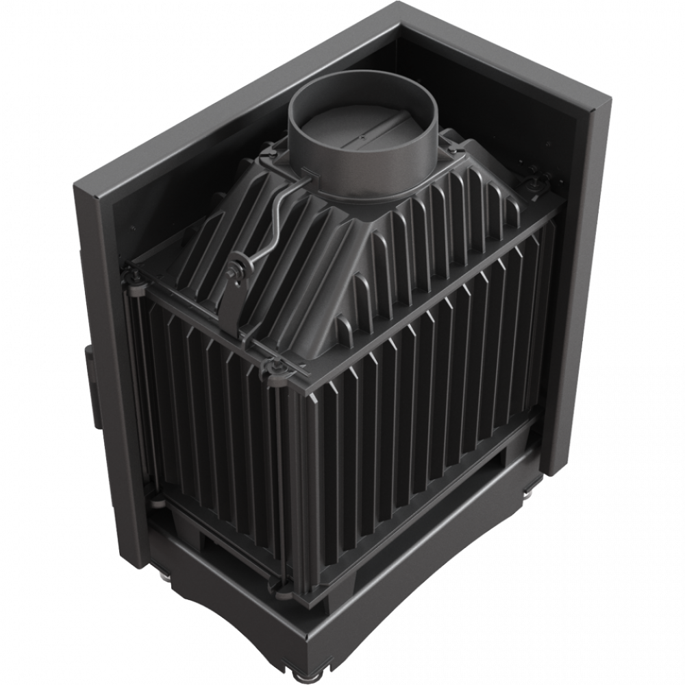 - Увеличена поверхность теплообмена между горячими дымовыми газами и помещением благодаря высокому переходу из камина в дымоход.