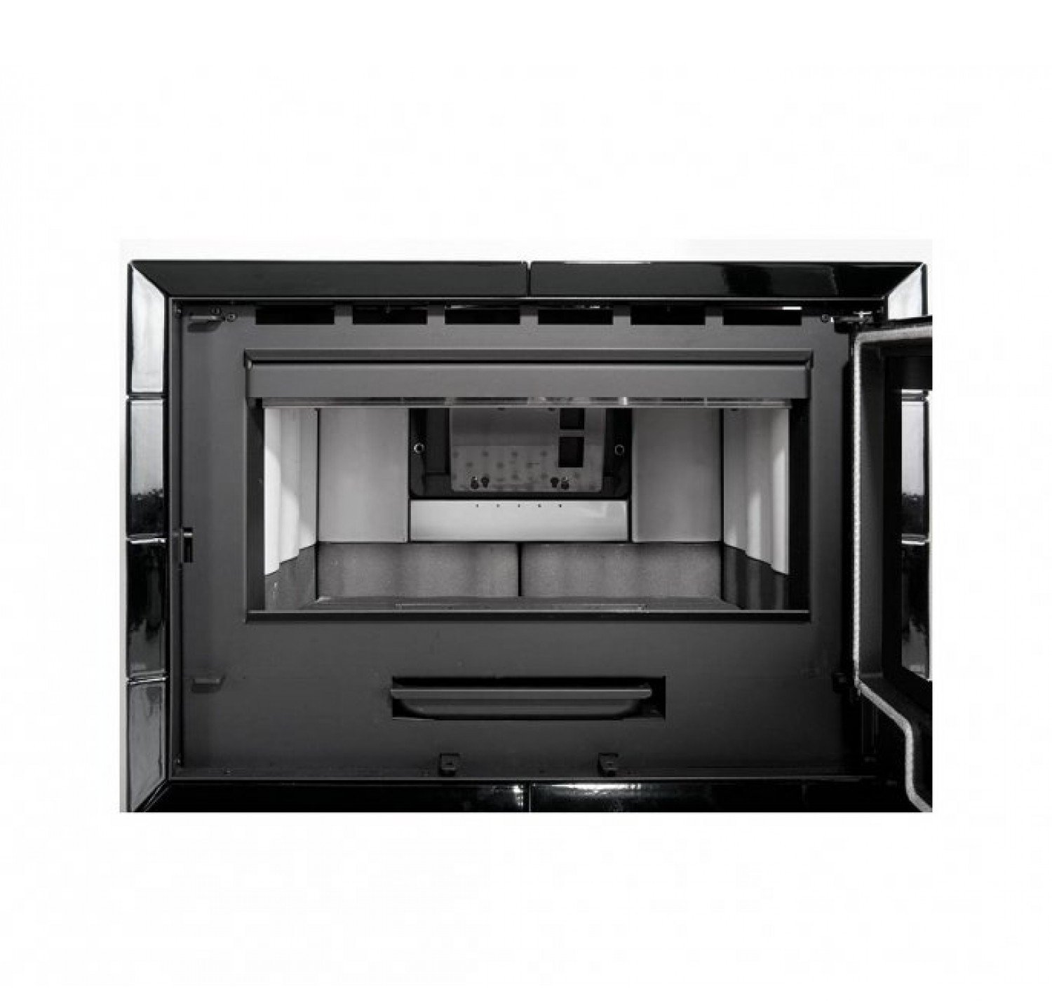 Камин модели Fly con cassettone отдельно стоящий и занимает очень мало места. Несмотря на изящную, дорогую отделку из эксклюзивной керамики, он может обогреть помещение площадью 244 м3, его огнеупорная дверца выдерживает температуру нагрева до 750 градусов. Каминные топки - моноблоки линии Nordica Monoblocchi имеют широкий очаг IRONKER® отлитый из высококачественного чугуна.