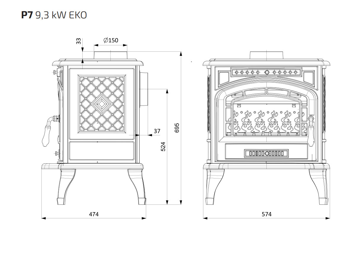 Чугунная печь-камин KAWMET P7 - 9,3 кВт ECO с отличным дизайном и великолепной ценой, используется для отопления помещений, а также как предмет интерьера. Выполнена из чугуна класса EN-GJL- 200 под давлением с гладкими стенками без пор и обработки. Глубина топки под закладку дров 21 см, максимальная ширина топки 36 см, длина используемых дров до 36 см.