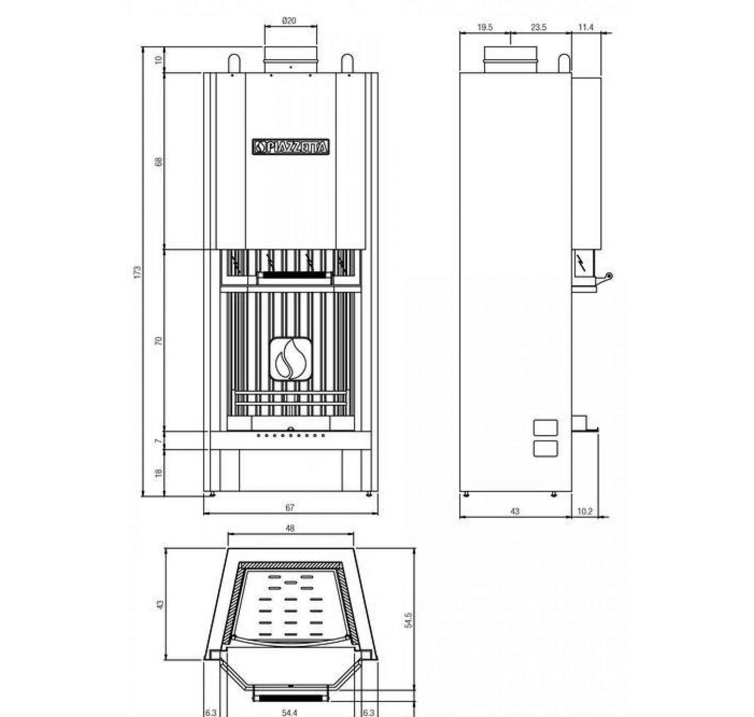 Топка с призматической фасадной дверцей вертикального открывания.