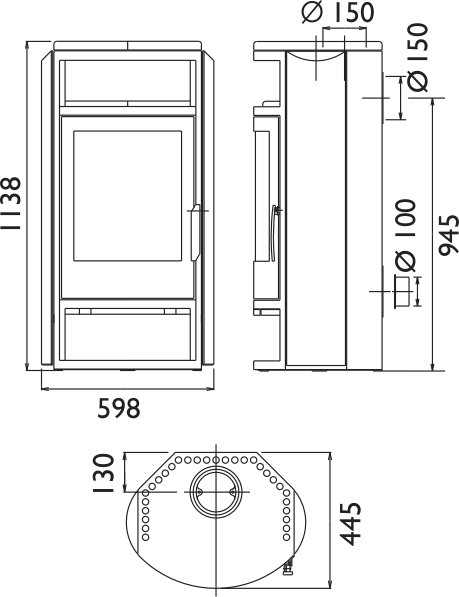 - Диаметр дымохода, (мм) 150