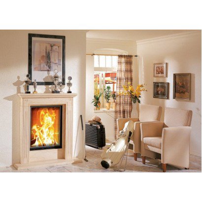 Портал из натурального камня (выбор камня из каталога). В комплект входят декоративные отделочные рамки, необходимые для оптимального монтажа топки.