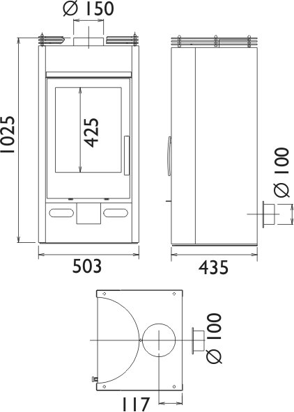 - Диаметр дымохода, (мм) 150