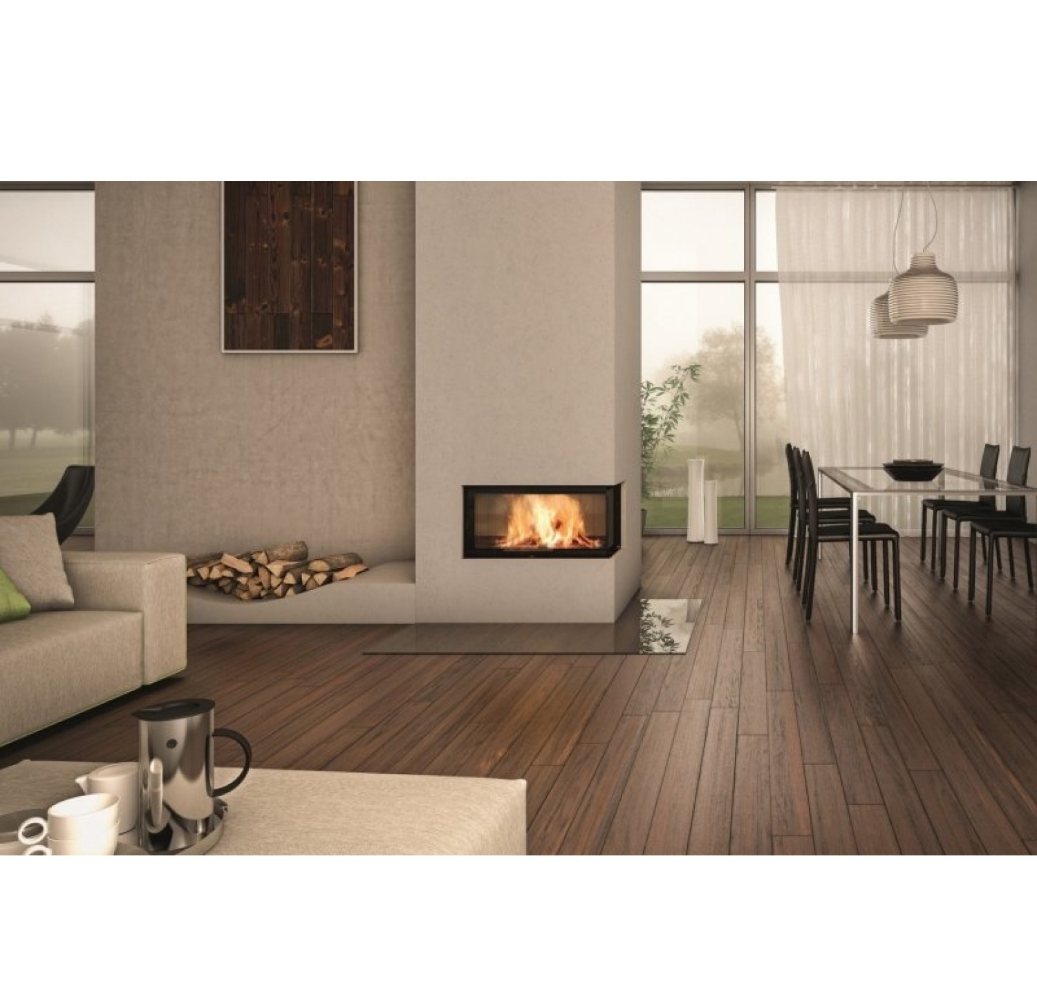 - установка дровяного камина довольно сложна и занимает много времени сама по себе, не говоря уже о попытке вписать такой камин в готовый интерьер; - устройству дымохода следует уделить особое внимание, так как при ошибках в конструкции камин может начать дымить внутрь помещения; - необходимость установки дымохода сильно усложняет процесс размещения камина в городской квартире, особенно, если квартира располагается не на последнем этаже; - необходимо заранее продумать, где будут храниться дрова; - нужно помнить, что при использовании для топки дров потребуется постоянная чистка дымохода от золы;