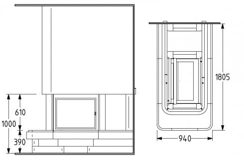 Цена указана за камин в стандартном исполнении (см. чертеж) из указанных материалов без топки.