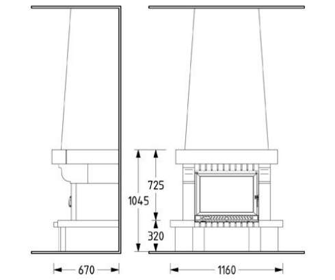 Цена указана за камин в стандартном исполнении (см. чертеж) из указанных материалов без топки.